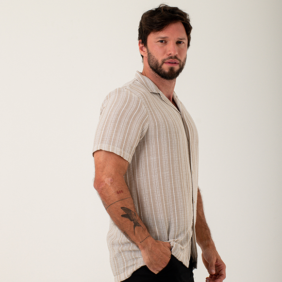 CAMISA MC 100% ALGODON TEXTURA RAYAS HOM
